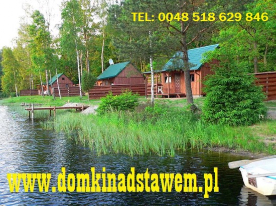 "Domki nad Stawem" to obiekt agroturystyczny, położony w lesie 15 km od miasta, w miejscu zacisznym i urokliwym, w otoczeniu wspaniałej przyrody. To malownicze miejsce jest znakomite do wypoczynku dla rodzin z małymi dziećmi i ich czworonożnymi pupilami, dla zakochanych par, wędkarzy i sportowców a także tych wszystkich, którzy chcą odpocząć od miejskiego hałasu, cenią sobie ciszę oraz pragną bliskości natury. Zapraszamy także na jesienne grzybobranie! Naszym Gościom oferujemy komfortowe, w pełni wyposażone domki, saunę, gorącą beczkę, plac zabaw dla dzieci, altanę z grillem, dużo wolnej przestrzeni oraz znakomite trasy spacerowe i rowerowe. OFERTA: * domki letniskowe na ogrodzonym terenie, * aneks kuchenny i taras, * kuchnia z podstawowym wyposażeniem, * łazienka z pełnym węzłem sanitarnym, * miejsce na ognisko i grill, * sauna, * jacuzzi, * plac zabaw, * boisko do siatkówki, * altana grillowa, * zwierzęta domowe mile widziane PROMOCJA ! Sauna-jacuzzi-wedkowanie-zwierze domowe-korzystanie ze sprzetu wodnego oraz wszystkie media w cenie domku*. * Energia elektryczna 1 kw dziennie. * Sroda dzien sauny pozostale dni odplatnie na zyczenie. * W przypadku zwierzat domowych wymagana wlasna posciel. domek 1-2-3.sezon A 150 zł. (za dobe do 4 osób, kazda nastepna osoba 20 zł)* domek 1-2-3.sezon B 160 zł. (za dobe do 4 osób, kazda nastepna osoba 20 zł)* domek 4........sezon A 120 zł. (za dobe do max. 4 osób)* domek 4........sezon B 130 zł. (za dobe do max. 4 osób)* PROMOCJA !!!!!! TYLKO 140 PLN ZA KAZDY DUZY DOMEK W SEZONIE (A)* * promocja nie dotyczy dlugiego weekendu majowego i czerwcowego * sezon A od kwietnia do 20 czerwca oraz wrzesien * sezon B od 20 czerwca do 31 sierpnia * w sezonie B wynajem tylko tygodniami Aktualne ceny oraz wiecej informacji na naszej stronie internetowej ! www.domkinadstawem.pl